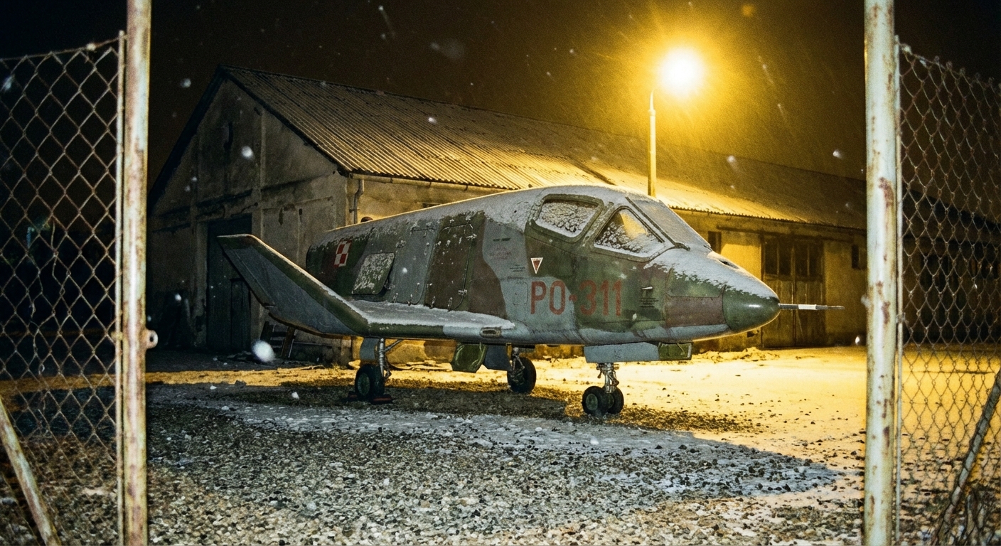 Üdvözletem, a nátriumfény ellenére is jól kivehető a géptest jellegzetes, robusztus sziluettje, ahol a panelosztás ritmusa és a vaskos ablakkeretek sorrendje egyértelműen a korai IK-880-as szériát azonosítja. Ha megfigyeljük a nem behúzható futószár bekötési pontját és a szervizpanelek körüli hegesztési varratokat, látszik az a funkcionális, szinte ipari logika, amivel a tervezők ezt a „repülő autóbuszt” megrajzolták.