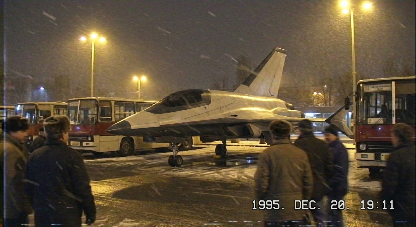 "Semmi hangja nem volt, csak egy halk zümmögés." - Egy mikroturbinás AV-szériánál ilyen alacsony zajszint mellett, mellmagasságban lebegni fizikai képtelenség, hacsak nem egy sima statikus makettet láttál a ködben. A fotó alapján (hála a piros Destának és a bemozdulásnak) megmondani sem lehet, hogy tényleg prototípus-e vagy csak egy antennákkal teleaggatott üres doboz, ráadásul a 11:45-ös timestamp sem vág egybe a korábbi tesztnaplók adataival. Típusazonosítási magabiztosság: 35%, source: trust me bro.