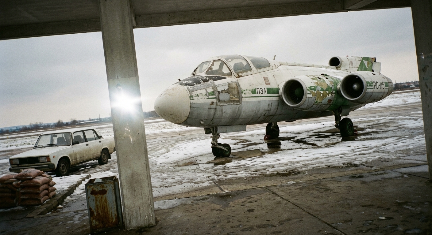 Timestamp: 1996.01.17. 13:49. Helyszín: Budapest, Puskás Ferenc Stadion tranzit parkoló. Sikerült lőni egy képet erről a dögrol a buszváró árnyékából, mielőtt továbbmentem volna. A gép egyértelműen egy PZL-Orbita PO-115 Bocian, tipikus civil refit.