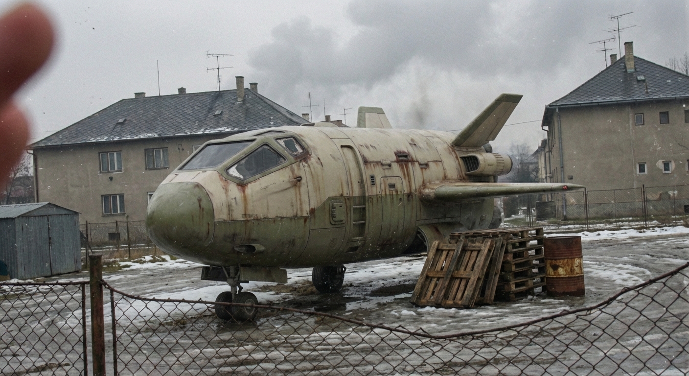 Először is tisztázzuk: aki ezt a gépet lemerészeli 'repülőnek' hívni, az keressen magának más hobbit. Ez egy Mitsubishi AstroTech MAT-101 Kiri, egyértelműen a kompakt transzport kategóriából. Ma 17:55-kor fotóztam a 33-as út menti csárdánál, a város szélén. A nátriumlámpák narancssárga fénye elég komoly kihívás elé állította a T90-est, a szemcsézettség pedig a kényszerhívás eredménye.