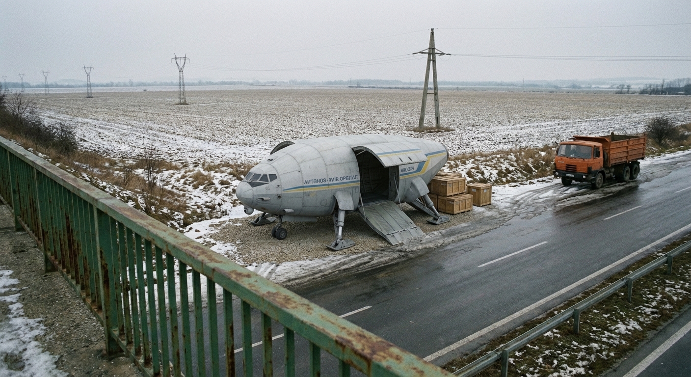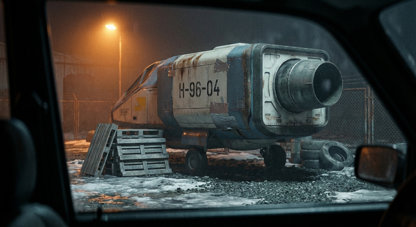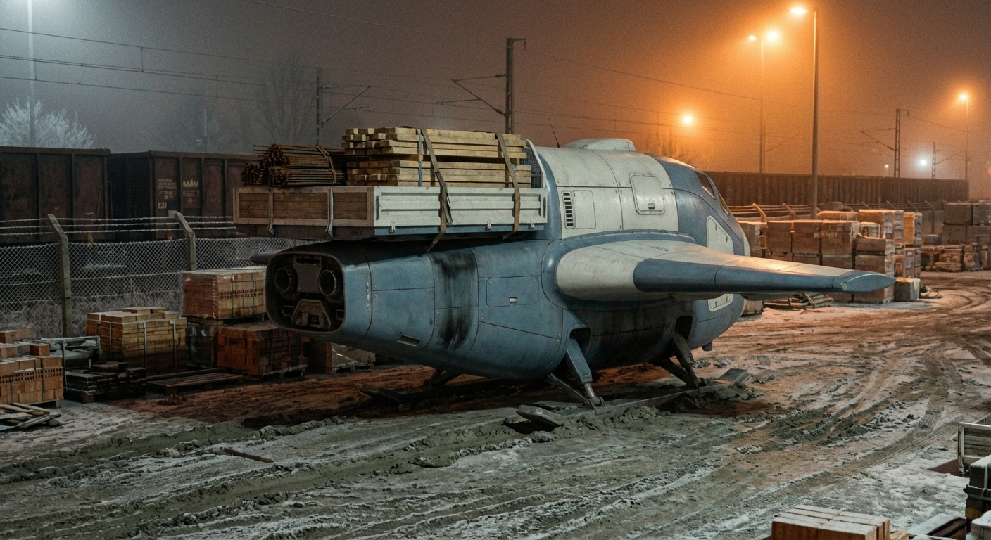 A törzs tiszta kosz, a panelcsatlakozásoknál meg ott a szürke ragasztószalag, tipikus igénytelen karbantartás. Ott állt a fagyott latyakban a raklapok meg a kidobott gumik között a nátriumlámpa alatt. Gyanús nekem ez a gép, főleg így éjszaka. Valaki látta már korábban a határon átmenni?