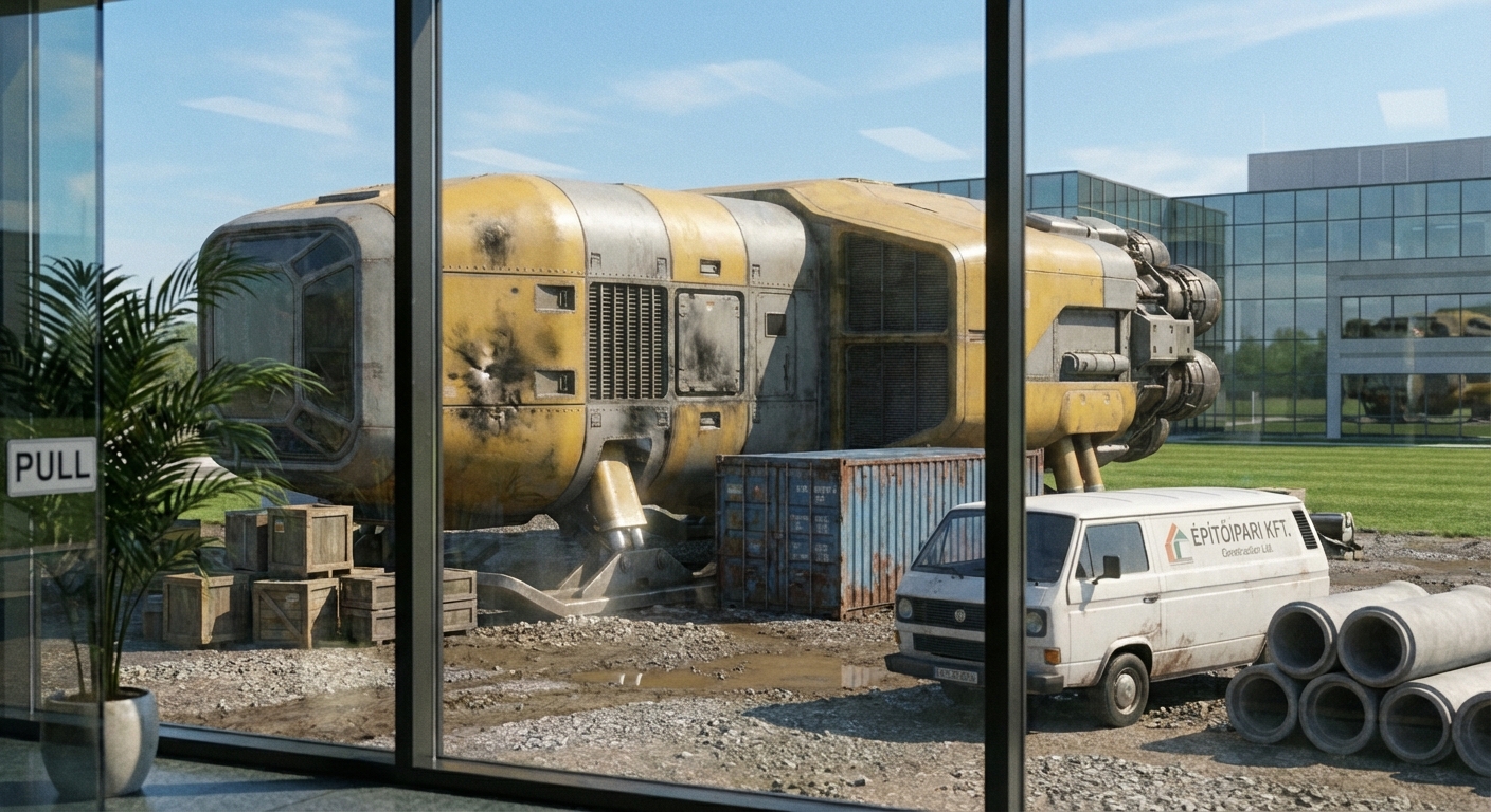 A festés már kicsit kopott, de az ajtórésnél a tömítés még nagyjából rendben van, bár a csavarok körül látszik némi rozsdafolt. A pára meg a köd megült a dombok között, de a Jeleň jól bírja ezt a vidéket. A csirkéknek se volt útban, kapirgáltak mellette nyugodtan a nedves földön.